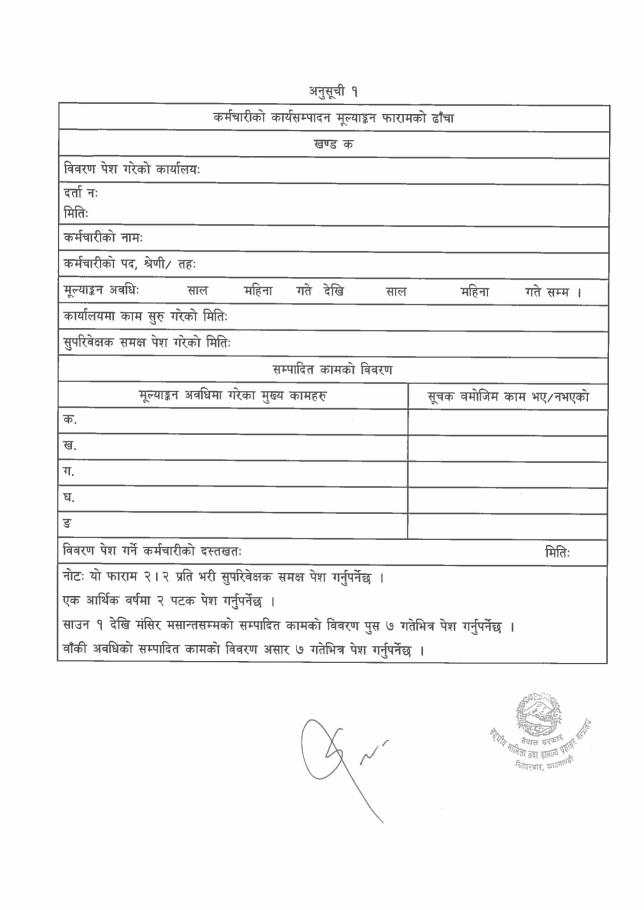 करार सेवाका कर्मचारीहरुको कार्यसम्पादनको मूल्याङ्कन तथा नयाँ अवधिका लागि करार सम्झौता सम्बन्धी सूचना ।