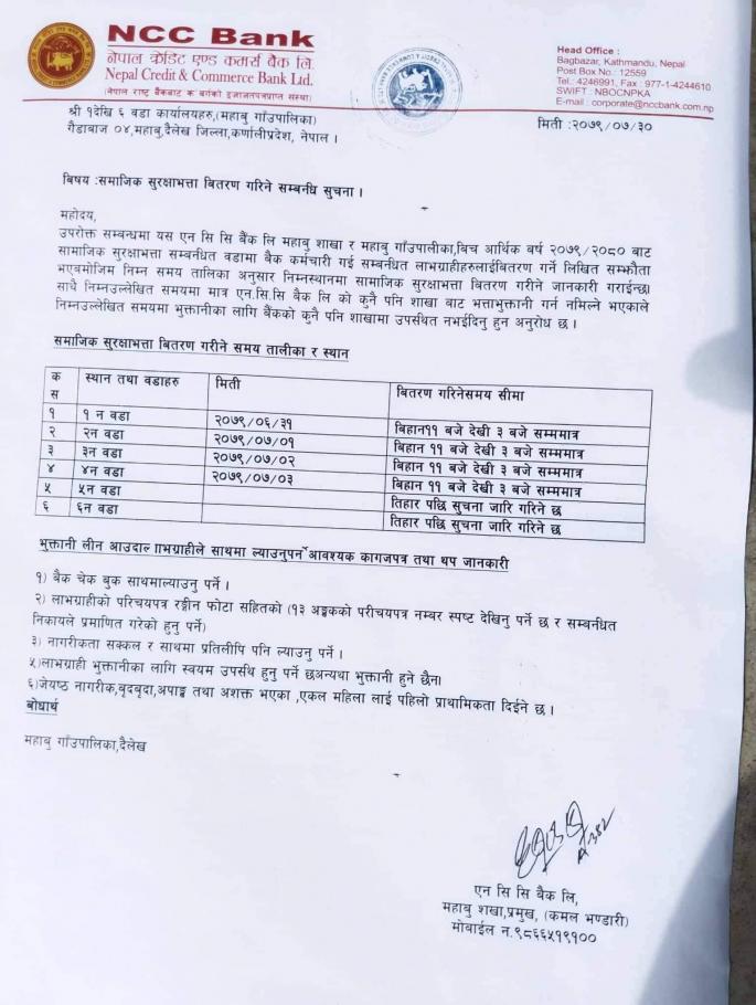 सामाजिक सुरक्षा भत्ता वितरण गर्ने सम्बन्धी सूचना ।।।